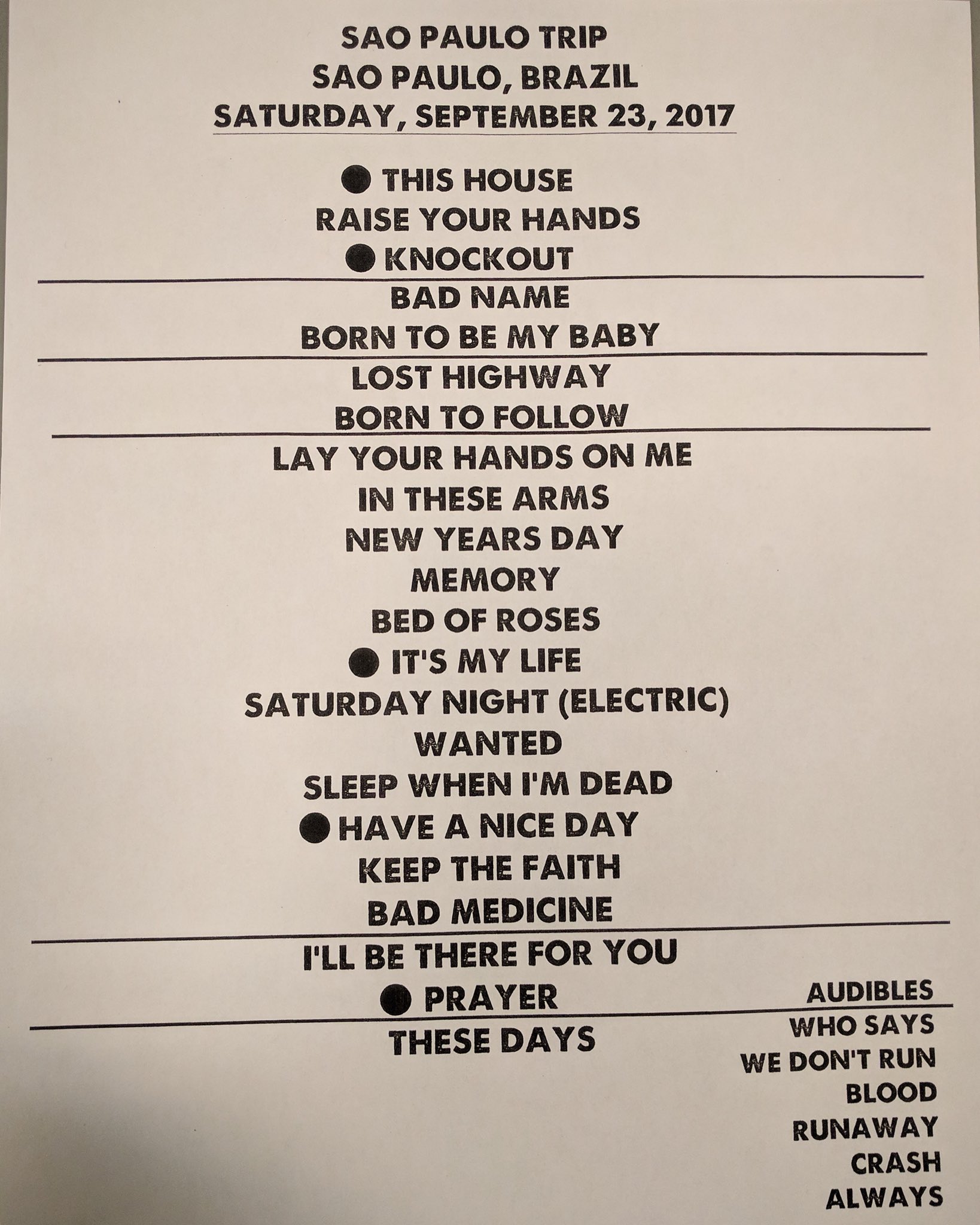 Bon Jovi On Twitter Setlist From Last Night At Saopaulotrio