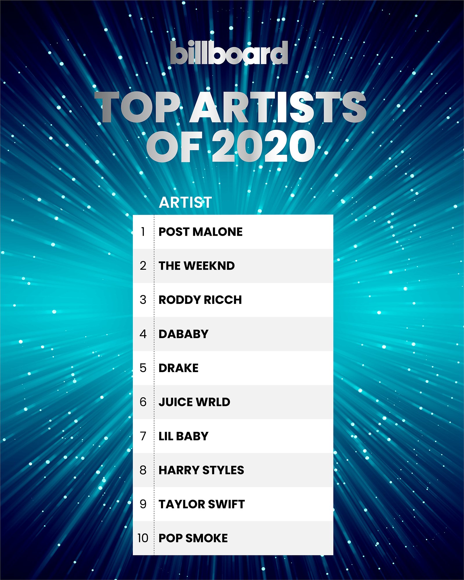 Billboard On Twitter The Top Artists Of 2020 See The Complete Year End Billboardcharts Here Https T Co Unqmullepw