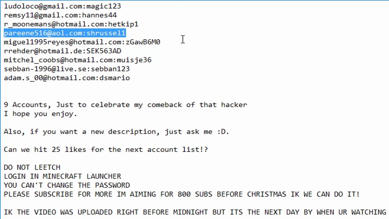 So please have a lock at his. The Minecraft account generator refills daily to gurantee the freshest and best alts on the market. Raw paste data public pastes.
