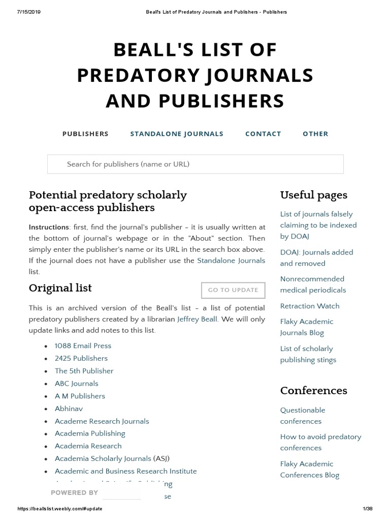 Be sure to regularly check the following link for updates to this list. It is the scholars who have come into the. Admittedly Bealls list was subjective and his methodology was not transparent.
